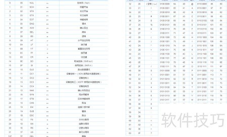 1、 查看ASCII码表,熟记对应关系即可实现编码转换。