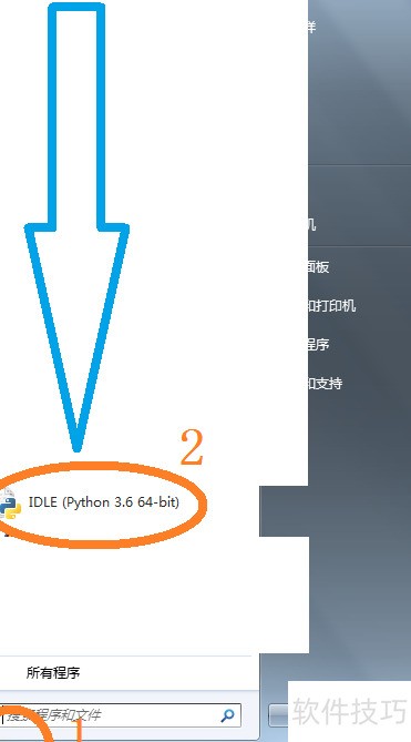 2、 启动Python软件:通过开始菜单打开IDLE程序。