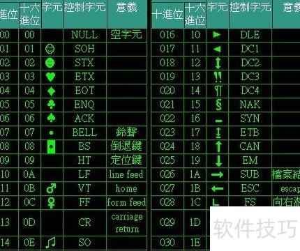 3、 ASCII码中0至31对应的字符为非打印控制字符,主要用于管理打印机等外部设备。例如,编号12的字符表示换页功能,发送该指令时,打印机会停止当前页面的打印,并自动转到下一页起始位置继续输出内容。