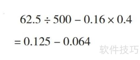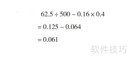 3、 62.5除以500的商减去0.16乘0.4的积,差为0.061。