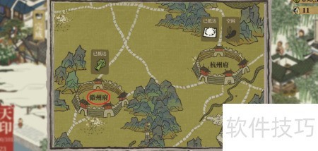 6、 进入徽州府后,可选择任一四个议事堂点击进入。
