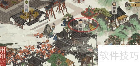 登录江南百景图,将游戏更新至1.5.3版本,进入大地图选择徽州府,前往议事堂即可寻得徽商。