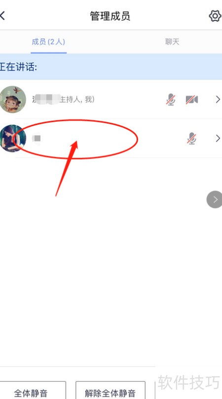 4、 在成员列表中选中需移除的人员。