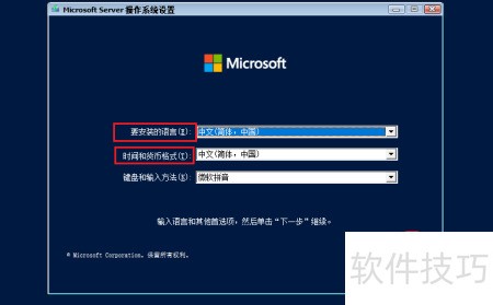 1、 启动系统,选择语言与时间设置,点击下一步继续安装。