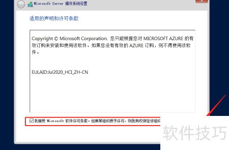 3、 勾选同意微软软件许可条款,点击下一步继续。
