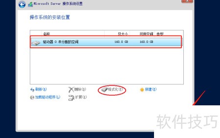 5、 选择目标磁盘并格式化,完成后点击下一步,静待系统安装结束即可。