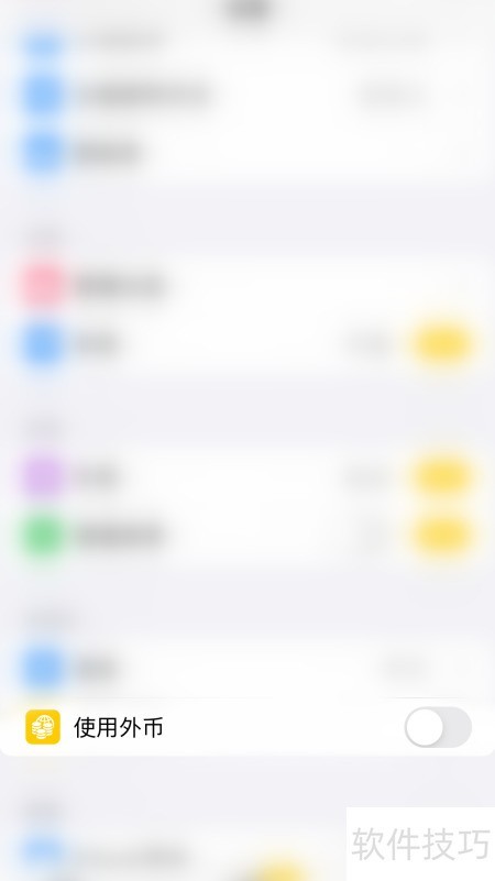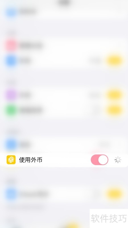 3、 在设置中点击使用外币右侧的圆点