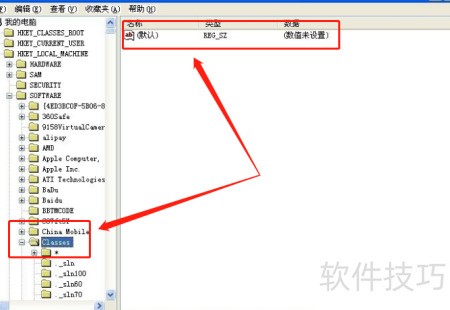 10、 依次展开注册表路径:HKEY_LOCAL_MACHINE,随后进入SOFTWARE目录下的Classes子项。