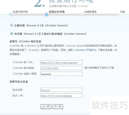 15、 检测成功后,点击下一步,将进入服务器环境检测及UCenter设置界面,具体所示。