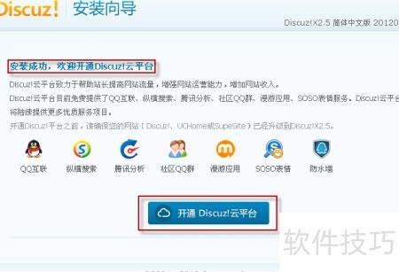 20、 安装完成后,将显示欢迎开通云平台的页面。如需立即启用,可点击开通云平台,随后创始人可登录站点后台进行操作。