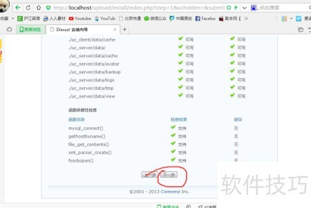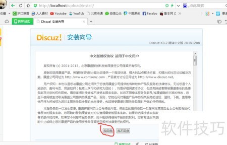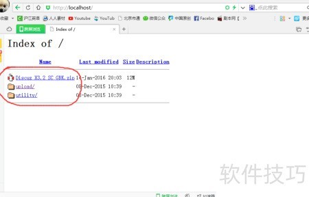 3、 打开浏览器,在地址栏输入localhost后按回车,即可访问www目录中的文件。接着双击进入upload文件夹,便可看到Discuz程序的安装界面,操作步骤所示。