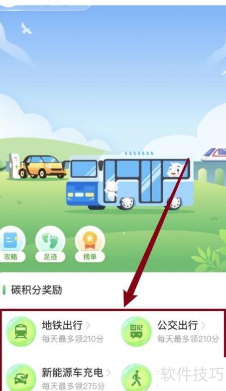 3、 在碳积分页面的奖励详情中,低碳生活方式涵盖地铁、公交出行,以及新能源车充电和步行等项目。
