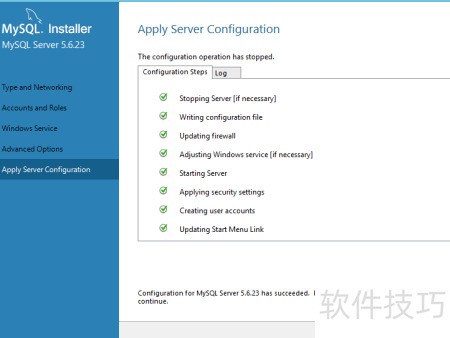 21、 MySQL服务5.6.23版本已成功安装并配置完毕。