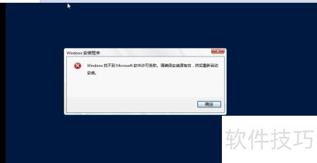 10、 第九步:系统提示错误,显示无法找到Microsoft软件许可条款,建议检查安装来源是否正确有效。