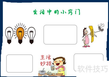 3、 在生活中的小窍门手抄报下方空白处,绘制一个实用的生活妙招示意图。