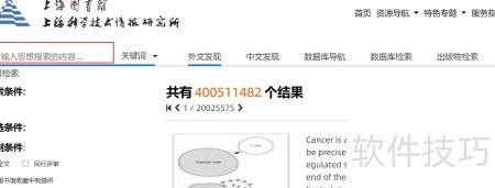 3、 在新页面的导航栏中,将数据库导航切换为外文发现选项。