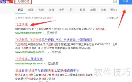 1、 先打开百度,搜索飞达快递,点击官网链接即可进入。