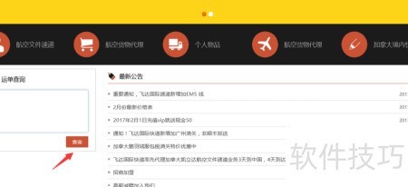 2、 打开网站主页,向下滑动,在左侧找到快递查询功能,输入运单号码后点击查询按钮即可。