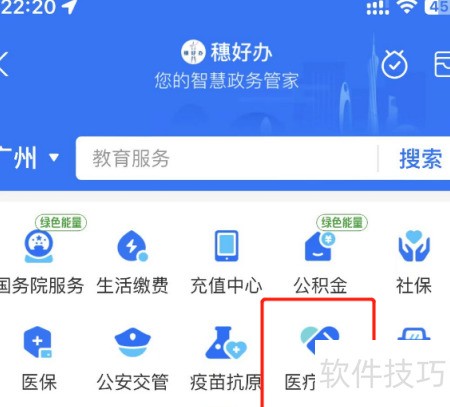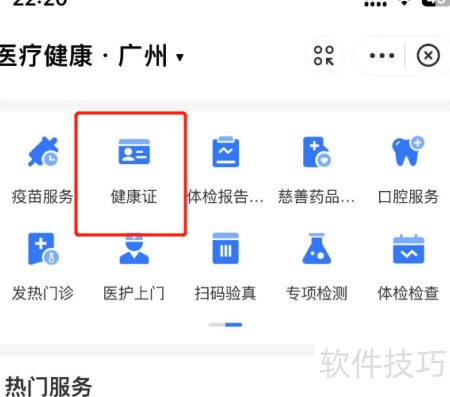 2、 进入医疗健康页面,点击健康证选项。