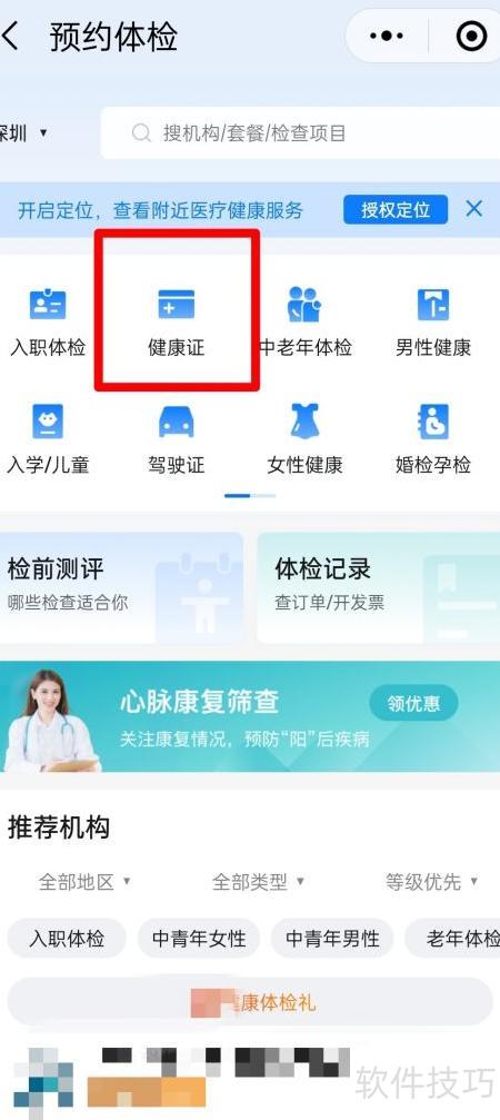3、 在健康证页面选择体检服务,点击预约即可办理。