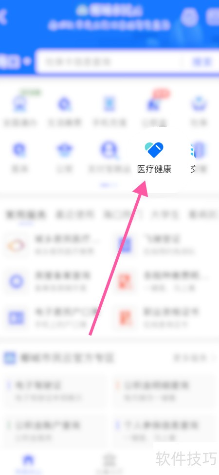 2、 点击下方医疗健康栏目