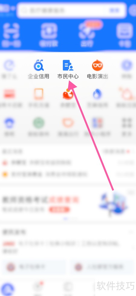 1、 打开支付宝,点击底部市民中心入口。