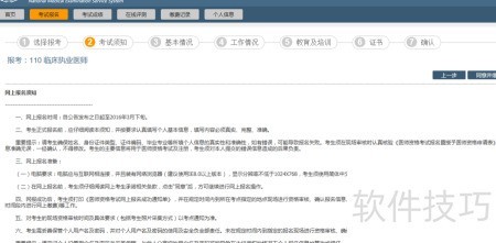 3、 报名时首先会显示考试须知,包括网上报名须知、考生承诺书、报名资格规定(2014版)以及违纪违规处理规定(国家卫生和计划生育委员会令第4号)。这些内容十分重要,务必认真阅读,有助于顺利完成报名并了解考试相关要求,对后续流程具有指导意义。