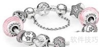 2、 潘多拉手链包含多种部件,如固定扣、吊坠、安全链、分隔珠、串珠及链条等组合元素。