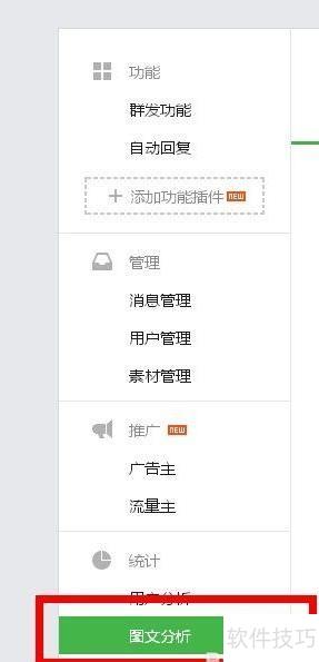 1、 登录微信公众号平台,从左侧导航栏的统计中进入图文分析功能。