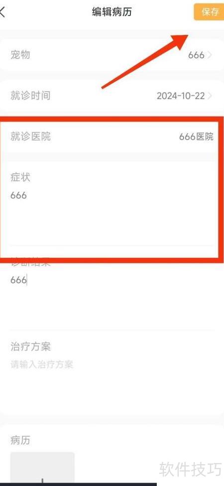 3、 进入病历添加页面,填写相关信息后点击保存即可。