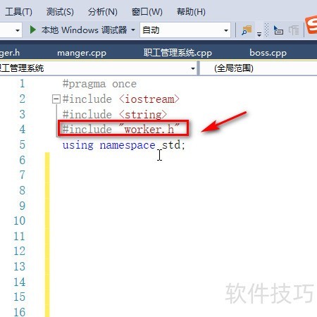 5、 在文件开头包含boss.h头文件。