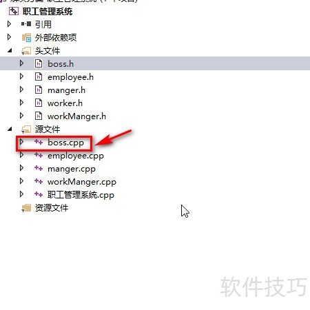 1、 在Visual Studio项目中,于头文件目录下创建名为boss.h的新头文件。