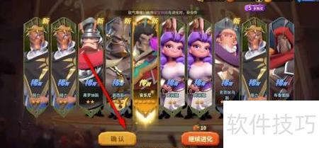 4、 随机抽取不同品质英雄,点击确认退出或继续进化进行下一次抽取。