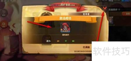 6、 激活成功,属性已提升,点击×返回。