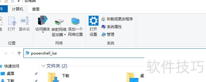 12、 在资源管理器任意位置,只需于地址栏输入 powershell_ise 并回车,即可启动 Windows PowerShell ISE,操作简便快捷,无需切换路径或使用其他工具,直接调用系统内置功能完成打开操作。