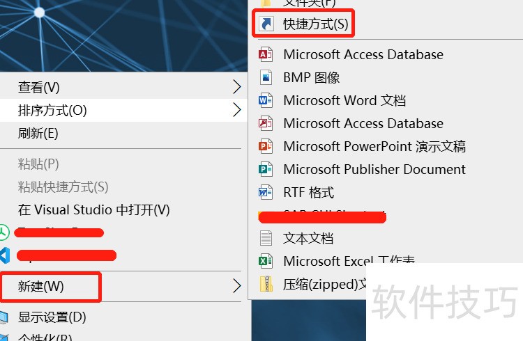 14、 按住 Ctrl + D 返回桌面,右键点击空白区域,选择新建中的快捷方式即可创建。