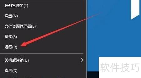 4、 在Windows 10桌面左下角的开始按钮上单击右键,从弹出的菜单中选择运行选项。