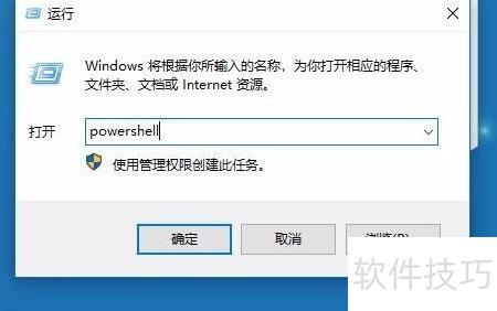 5、 在Windows 10中,按下运行窗口快捷键,输入Powershell并确认,即可迅速启动Windows Powershell程序界面,方便用户进行命令操作与系统管理。