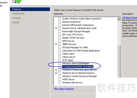 3、 选择Windows PowerShell选项,若已安装则无法再次勾选,确认后直接点击安装按钮即可完成操作。