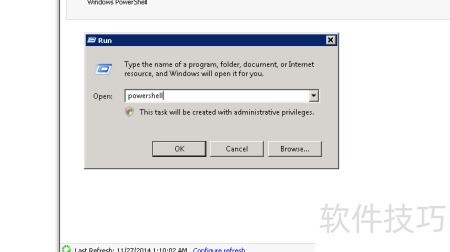 6、 按下Win键加R键,或点击开始菜单中的运行,输入powershell并执行。