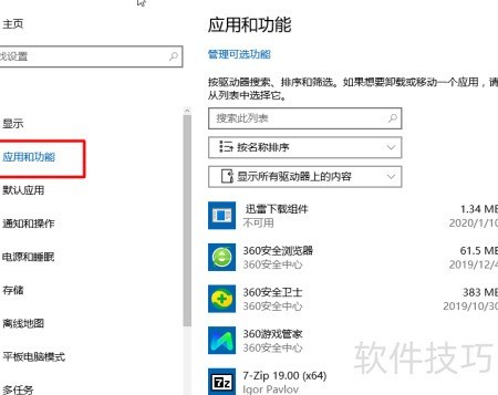 3、 左侧点击应用与功能选项