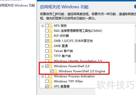 6、 在Windows功能中,勾选Windows PowerShell 2.0选项,然后点击确定即可完成设置。