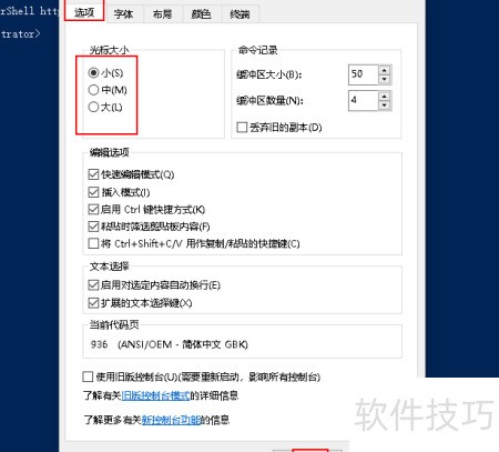 调整Windows PowerShell光标大小的方法如下:进入属性设置,选择选项卡中的光标大小选项进行调节。
