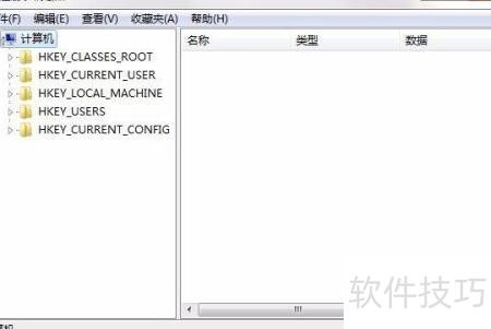 1、 输入regedit后按回车键进入注册表编辑器。