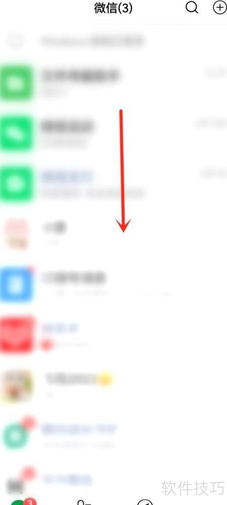 3、 打开微信应用,下滑进入最近聊天界面。