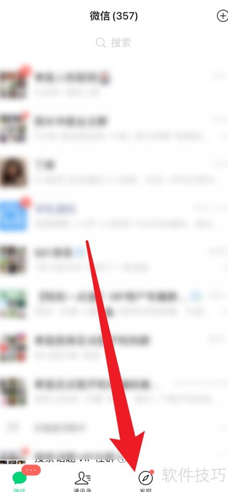 1、 进入微信后,点击右下角发现按钮。