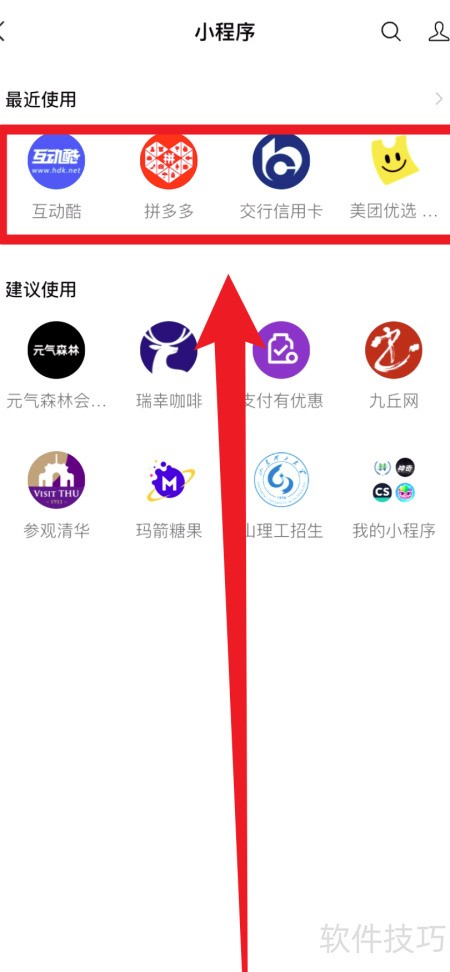 3、 在小程序页面可查看最近使用过的程序列表。