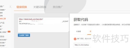 4、 输入淘宝商品链接,点击转换即可生成专属淘客链接。