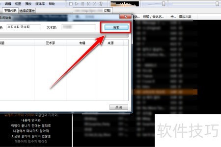 4、 在歌词搜索界面,点击搜索按钮进行查找。