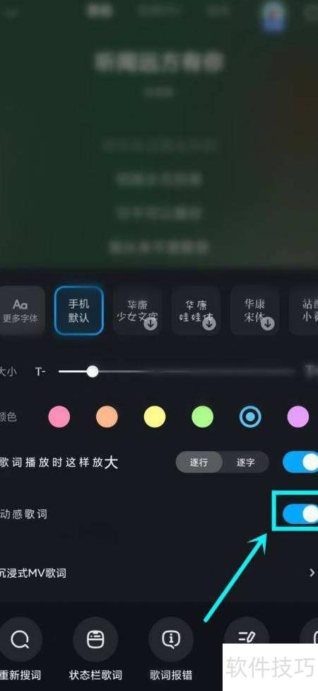 4、 开启动感歌词功能,即可体验动态歌词效果。...